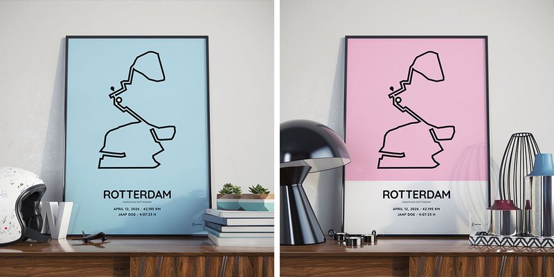 High-quality Rotterdam Marathon posters printed on premium paper. Choose your favourite background, size, and personalization. Posters are delivered without a frame so you can style your running achievement your way.