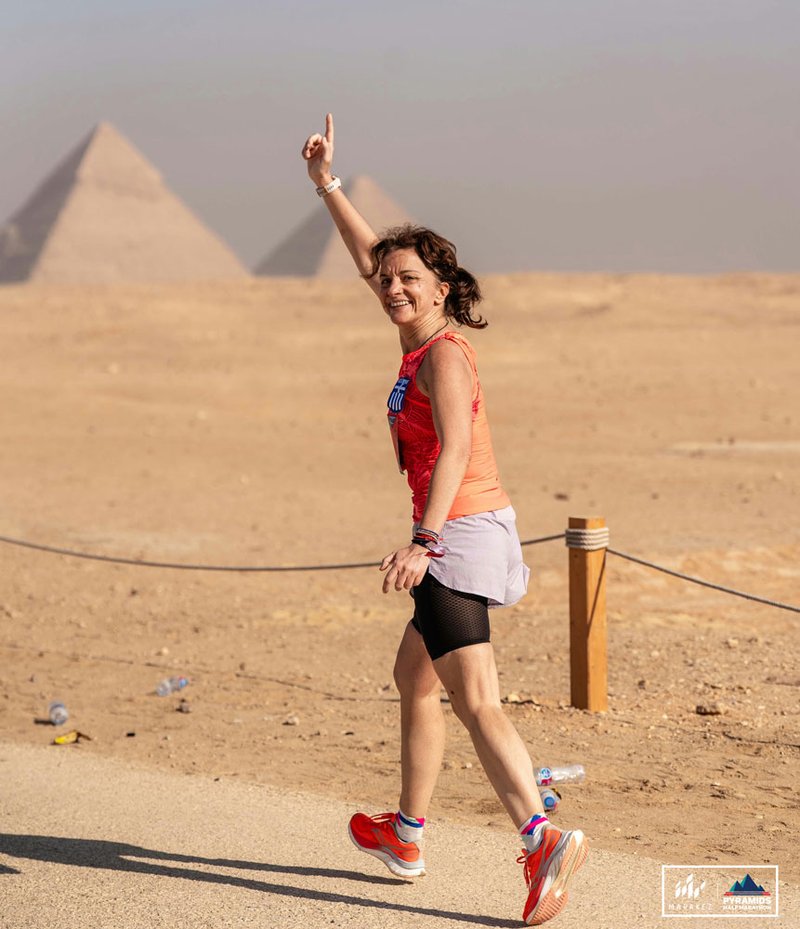 Evaggelia running between the pyramids at Giza!